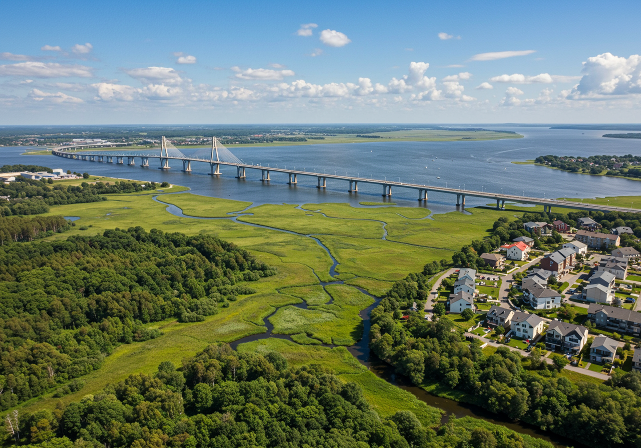 Although the first body of water that may come to mind when one thinks about Charleston, South Carolina, is the exalted Atlantic, the coastal city is equally defined by the rivers and tributaries that stretch and sprawl like the root system of a magnolia tree and create the many peninsulas and islands that make Charleston a unique place to live. At the divide of the Cooper River and the Wando River, a landmass the shape of a thumb is formed—this thumb is the southern end of Daniel Island.